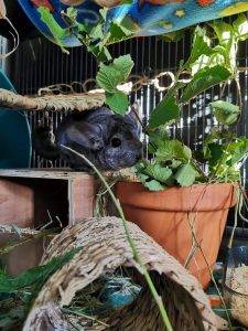Chinchillas require a large cage/enclosure and many marketed as suitable simply are not big enough. Ideally, we would like to see chins housed in large DIY enclosures with at least 1mx1mx1.5m space or even a specific chin safe room. German rodent care is miles ahead of us and many German sites have great info on building a suitable set-up – here are some useful sites: