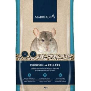 Pellets should only form a small part of the diet and should be viewed as a supplement, rather than a main food. Too many pellets can lead to obesity and serious dental issues as the chinchilla fills up on these, neglecting the all-important hay. We feed only around 1 tablespoon of pellets per day, alongside a mixture of forage (with hay available 24/7). Pellets containing grains and cereals should be avoided – grass/hay based pellets are best (not alfalfa!) – we use Marriage’s chinchilla pellets.