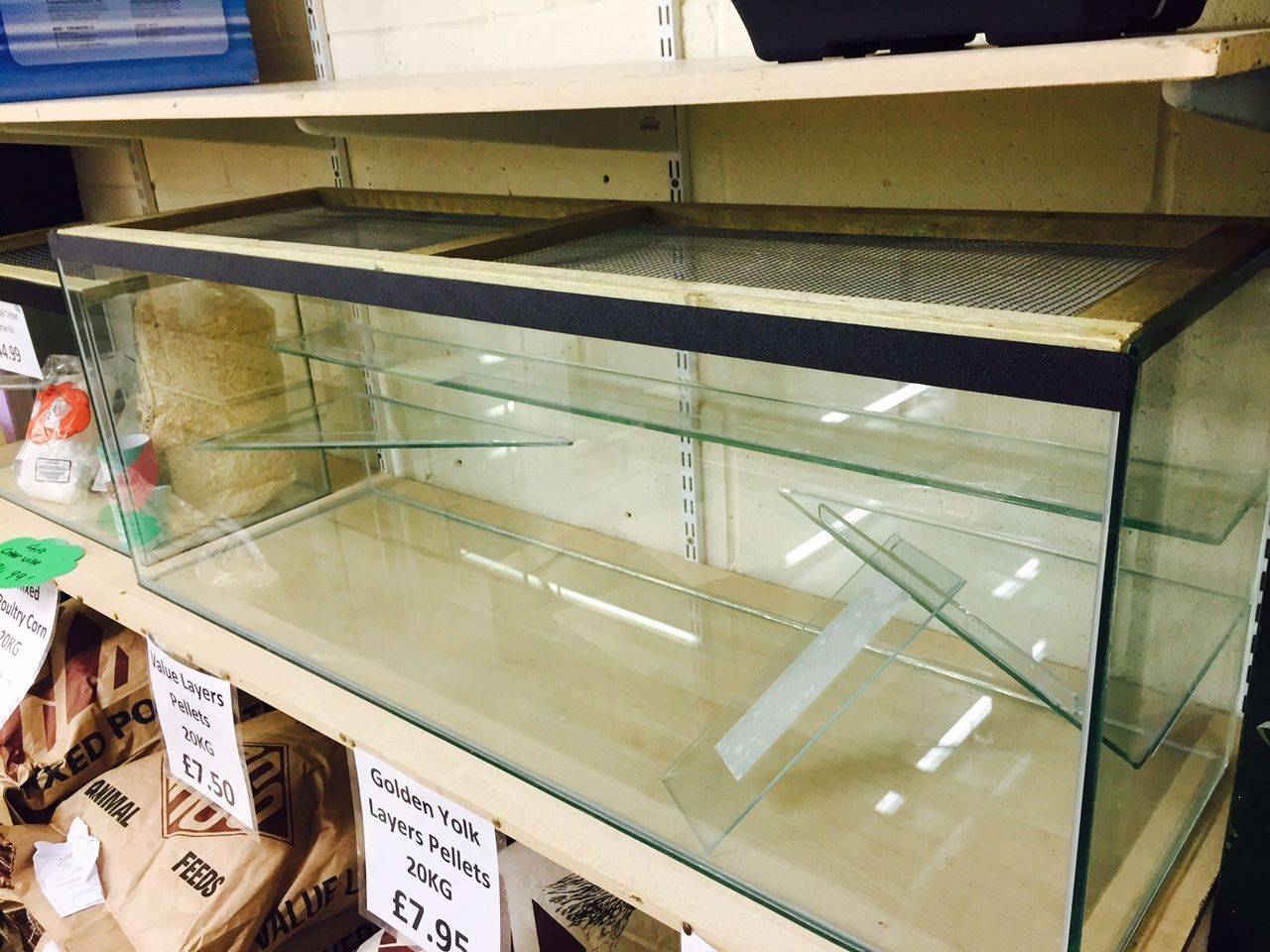 We recommend a pair of gerbils should be housed in a tank at least 100cm l x 50cm w x 40cm h. The floor space of the tank is important as well as the depth, so aim for at least 5000cm2 with a height of at least 40cm, ideally with a cage topper added to the top of the tank. It is worth looking on second hand selling sites for large fish tanks which you can then make a lid/topper for.