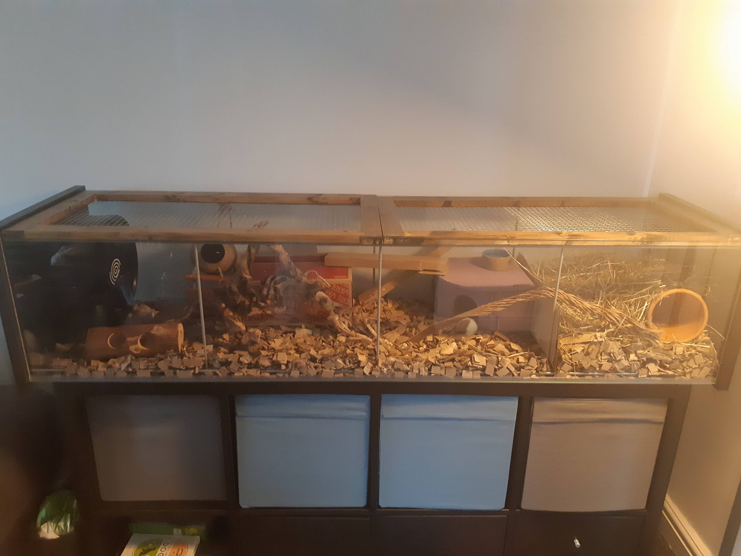 Hamsters need lots of space, but it is also important to set up this space well with substrate, hides and enrichment to meet their needs. Check out the video on Setting up a Hamster Cage by Victoria Raechel and some photos of example set-ups below!