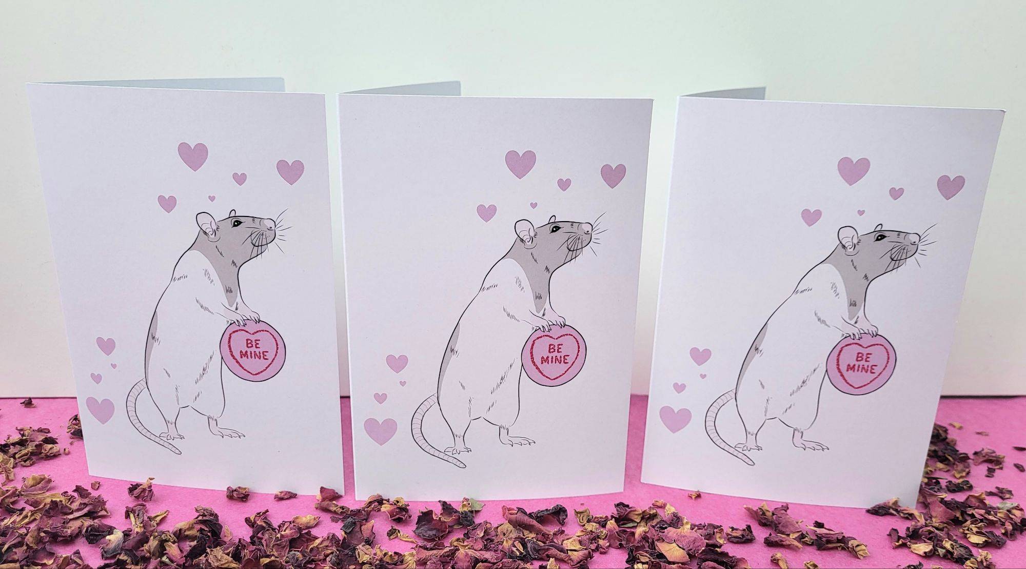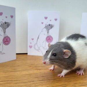 Crafted on premium recycled card, this eco-friendly card stars a delightful rat holding a romantic sweet in his tiny paws! Perfect for your rat-loving valentine!…