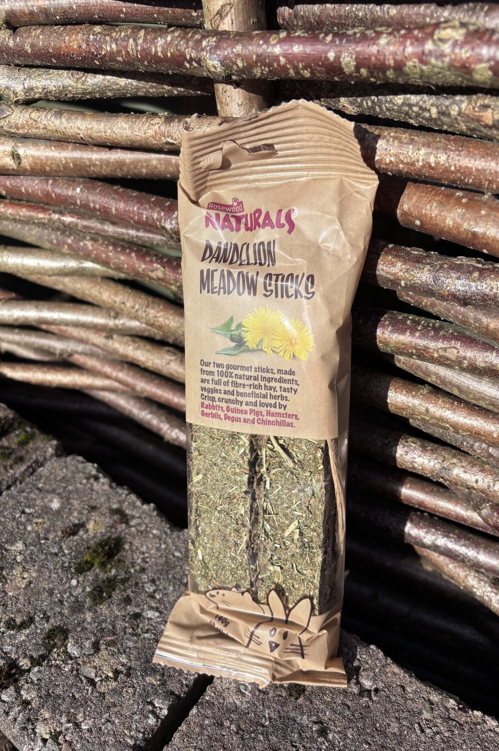 Rosewood’s new and improved gourmet Dandelion Meadow Sticks have been carefully created to be better for your pet’s teeth and tummies than traditional sticks and bars. These sticks have fibre-rich hay as the number 1 ingredient as well as assorted vegetables and at least 8 different beneficial herbs. With delicious dandelion and all natural ingredients, these sticks have no added sugar or sugar-rich ingredients.